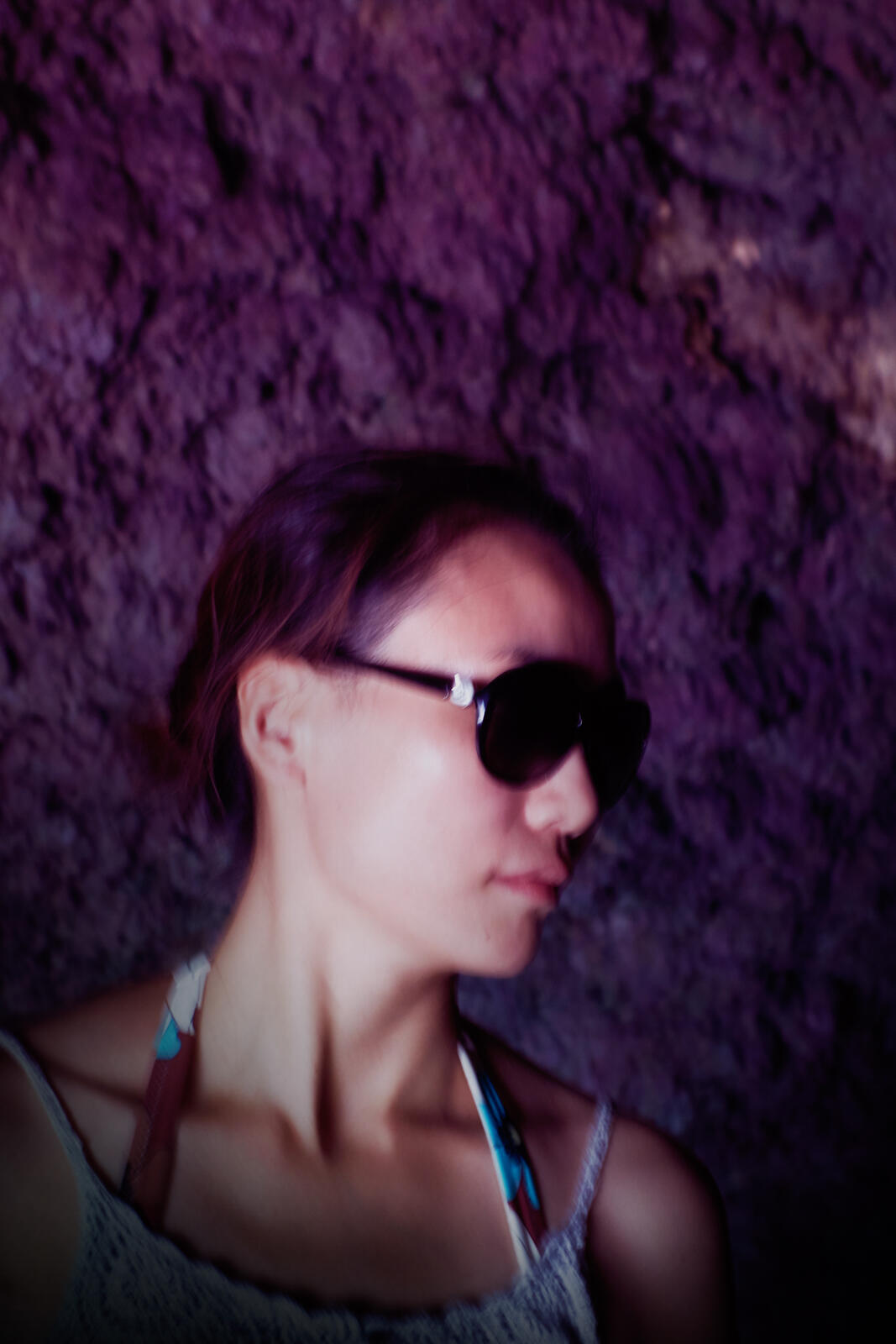 She wore sunglasses in every photo. Or could it be a high end eyewear campaign? Yet, rest assured, she’s not a friend who navigates by sound alone.