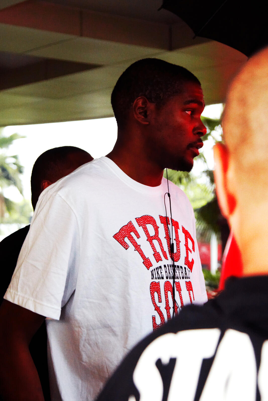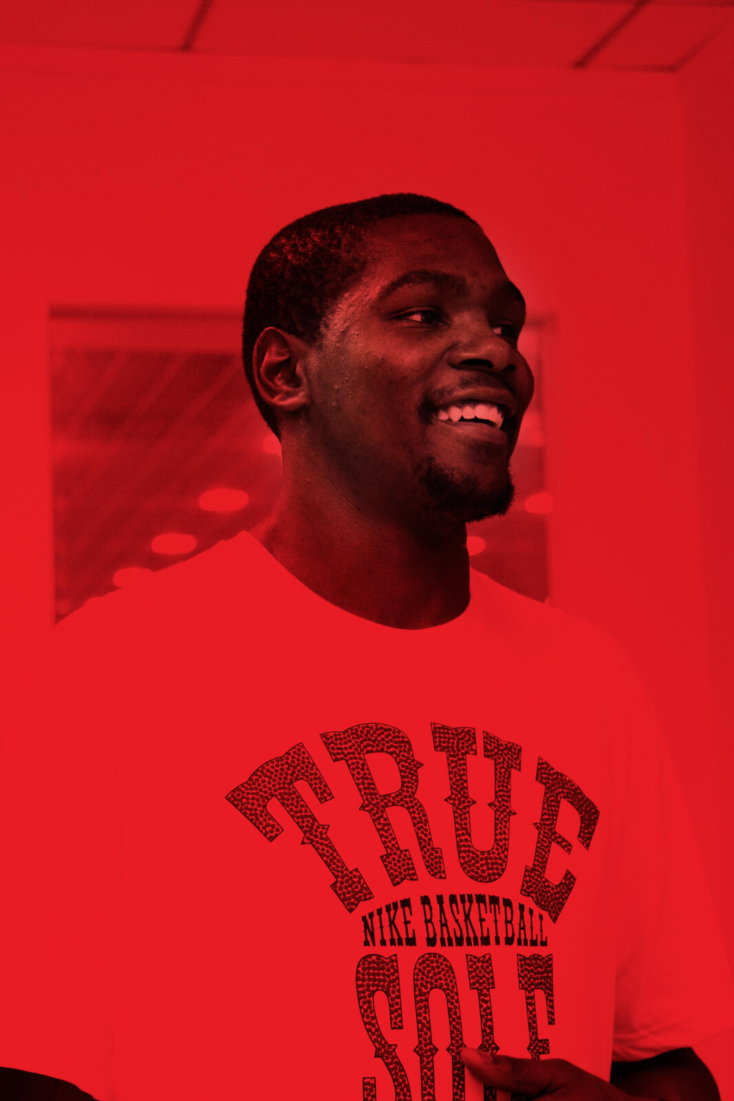 身高超過200公分的NBA球星,幾乎只能以仰角拍攝他,也難得拍到一張微笑表情照片。