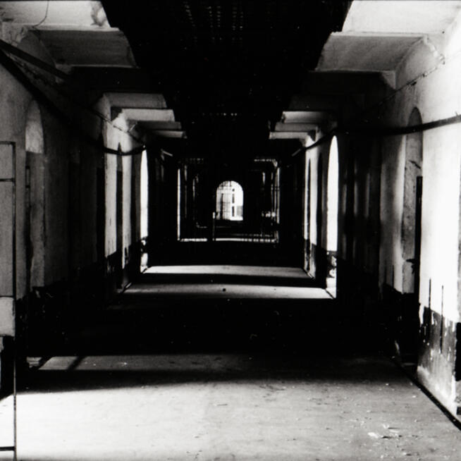 已棄用多年後的監獄,室內空無一人,走在佈滿灰塵的地面,所發出的磨擦聲清晰可見。僅以此寬幅相機拍攝的照片,向Joseph Koudelka致敬。
